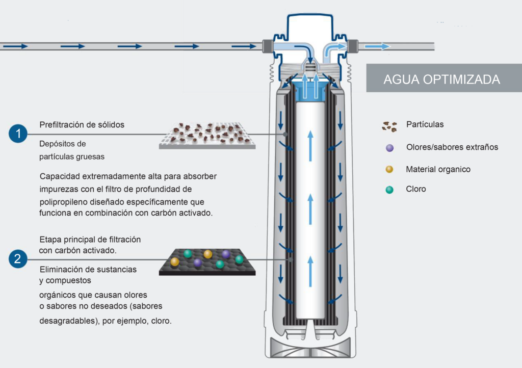 - Eliminación de sustancias y compuestos orgánicos, olores y sabores desagradables.