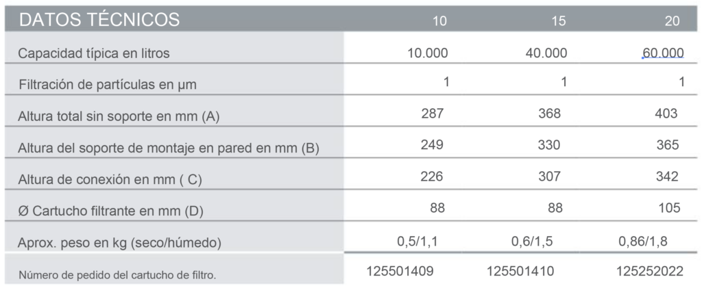 - Filtración en profundidad, reteniendo partículas en suspensión hasta 5 μm
