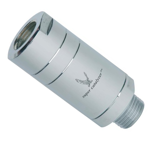 El Super Catalizador, es un acelerador de iones por magnetos permanentes, basado en física cuántica que mediante un potente campo magnetico de fuerte intensidad (10.000 Gaus = 1 Tesla), por medio de la aceleración de los electrones del Carbono y Hidrogeno radicalizándolos se obtiene un mayor poder energético, mejorando el rendimiento donde se instale reduciendo la futura acumulación de carbonilla en tuberias, quemadores, calderas, prolongando su vida util a la vez reduciendo mucho el consumo y las emisiones nocivas.